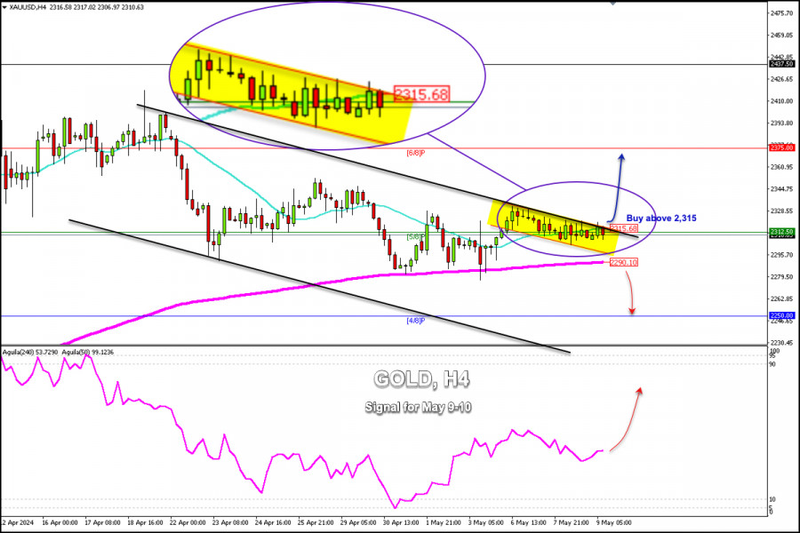 Trading Signals for GOLD (XAU/USD) for May 9-10, 2024: buy above $2,315 (21 SMA - 5/8 Murray)