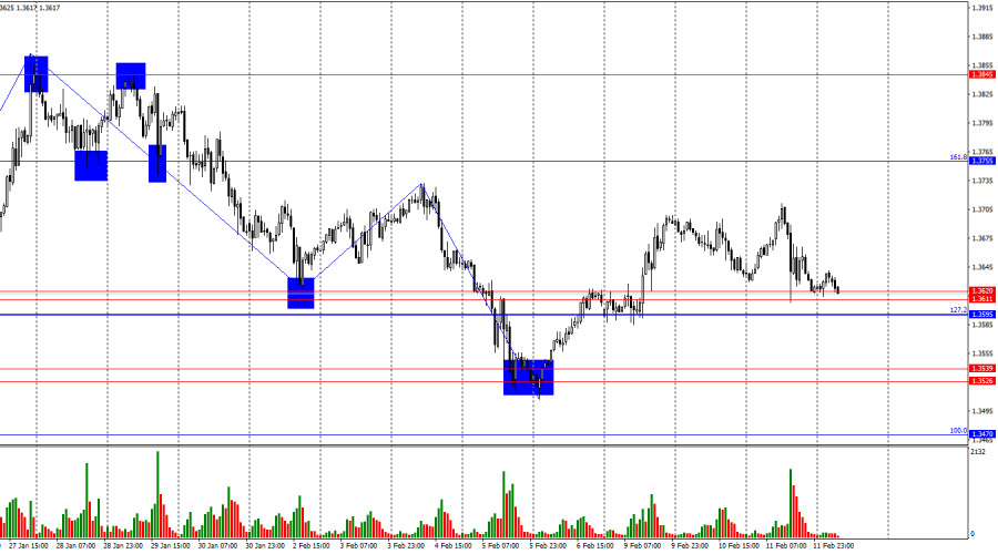 Информационный фон в среду имел все шансы, чтобы бросить спасательный круг доллару. Однако выброшенный в море спасательный круг тут же сам затонул. Отчеты по безработице и рынку труда за январь показали очень хорошие значения, но пересмотр значения числа созданных рабочих мест за весь 2025 год испортил все настроение трейдерам-медведям. Выяснилось, что в реальности было создано всего лишь на 400 тысяч рабочих мест меньше, чем предполагалось ранее. В среднем в Америке создавалось примерно 15 тысяч рабочих мест в месяц. Это значение – мизерное. Таким образом, трейдеры, безусловно, отработали январские отчеты, но долго радоваться медведям не пришлось. Сегодня день будет более спокойным, чем вчерашний, а у британца по-прежнему имеется сильная зона поддержки 1,3595–1,3620. Сегодня графические факторы будут стоять на первом месте для трейдеров. Без преодоления этой зоны доллар не сможет рассчитывать на новое укрепление.