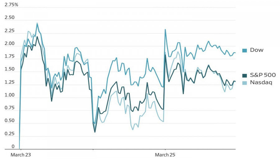 Устойчивость широкого фондового индекса обусловлена твердым желанием президента США эту устойчивость создать. Белый дом продолжает настаивать, что ведет переговоры. Однако не уточняет, с кем именно. Иран едко замечает, что он ведет переговоры с самим собой. Тем не менее Дональду Трампу пока удается поддерживать оптимизм. И это оптимизм толпы.
