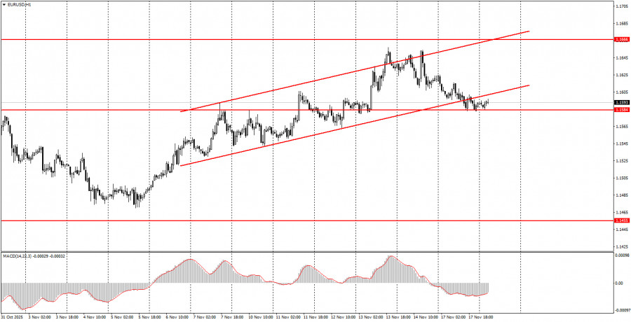 On the 5-minute timeframe on Monday, two trading signals were formed. By the end of the day, the price reached the level of 1.1584, bouncing off it twice, if these "twists" can even be called a "bounce." Nevertheless, today the pair may bounce off this level or even the 1.1571-1.1584 area and move up by about 30-40 pips.