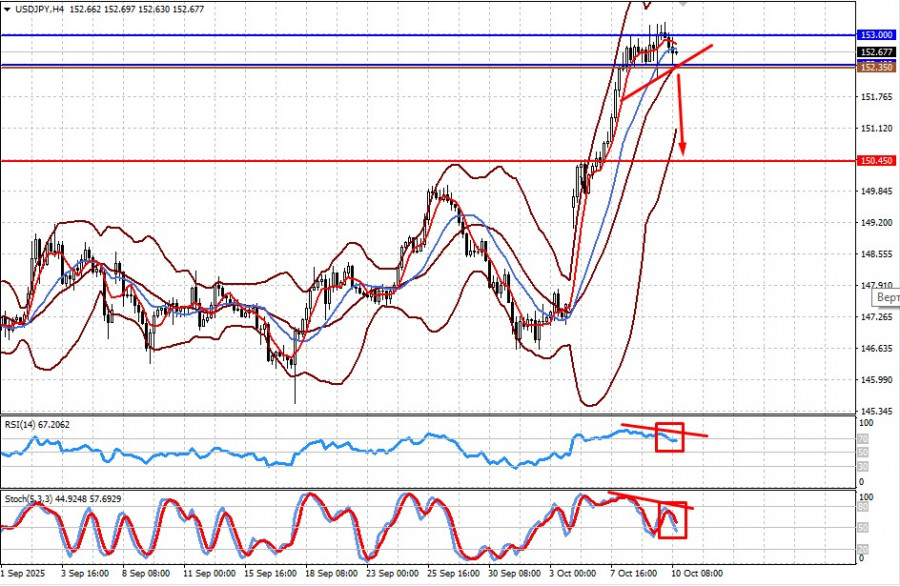 Měnový pár narazil na rezistenci na hladině 153,00. Neschopnost tuto úroveň překonat by mohla vést ke korekčnímu poklesu směrem k 150,45. Potenciální úroveň pro prodej by mohla být 152,35, pokud cena prorazí pod support na 152,40.