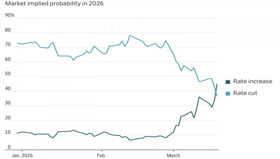 Zatímco na začátku roku futures trh počítal se 72% pravděpodobností snížení sazeb a 11% pravděpodobností zvýšení sazeb, ke konci druhé dekády jara se tato čísla posunula na 37 % a 45 %. Deriváty více věří v utahování měnové politiky než v její uvolňování. To vyvíjí tlak na americké akcie.