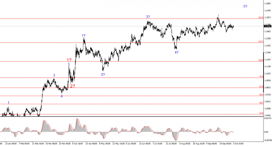 Построение повышательного участка тренда продолжается, а новостной фон продолжает поддерживать по большей части не доллар. Торговая война, начатая Дональдом Трампом, продолжается. Противостояние с ФРС продолжается. «Голубиные» ожидания рынка по ставке ФРС растут. В Америке начался «шатдаун». Рынок крайне невысоко оценивает результаты первых 7-8 месяцев Дональда Трампа, хоть экономический рост во втором квартале и составил почти 4%.